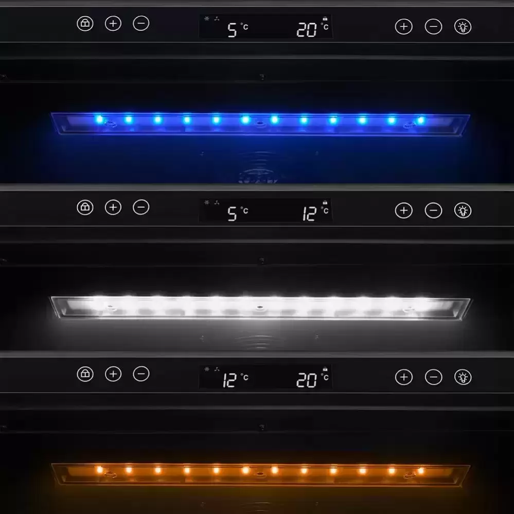 Компрессорный винный шкаф Meyvel MV154PRO-KBT3 Компрессорный винный шкаф Meyvel MV154PRO-KBT3 — идеальное место хранения и демонстрации коллекции вин в ресторанах, барах или винных комнатах. Он вмещает внушительную винотеку до 154 бутылок типа «Бордо», а если размер бутылки нестандартный, то съемные полки решат эту проблему. Три независимые температурные зоны для разных сортов напитков: верхняя поддерживает температуру от +5 до +20°C, средняя — от +5 до +12°C, нижняя — от +12 до +20°C. Подсветка белого, синего или янтарного цвета создает правильную атмосферу для эффектной демонстрации содержимого. Модель MV154PRO-KBT3 может быть как отдельностоящей, так и встроенной в нишу, а перенавешиваемая дверь предоставляет возможность разместить ее в любом удобном месте. Стоит отметить низкий уровень шума — всего 41 дБ, поэтому холодильник для вина не потревожит владельца неприятными громкими звуками. Для вашего спокойствия Meyvel MV154PRO-KBT3 оснащен системой сигнализации, которая оповестит об отклонениях температуры, функцией блокировки панели управления, предотвращающей случайные изменения настроек, и замком. Угольный фильтр очищает воздух внутри шкафа от посторонних запахов. Надежный, функциональный и стильный винный шкаф Meyvel MV154PRO-KBT3 станет достойным украшением ресторана, бара, гостиницы или кухни опытного коллекционера. Преимущества Meyvel MV154PRO-KBT3: вместимость (до 154 бутылок); три температурные зоны; два типа установки; перенавешиваемая дверь; угольный фильтр; подсветка; тихая работа (41 дБ); стильный дизайн.